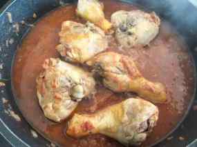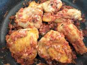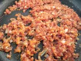 - Poseu a freigir el cap de costella, ja salat i les salsitxes, a foc lent, fins que quedi ben daurat, en aquest punt afegiu, tot tallat ben petit, l’all, les cebes i el pebrot verd, quan ja tinguin color afegiu la sèpia tallada a quadrets junt amb la salsa, quan veieu que ja està cuita poseu els tomàquets ratllats, mitja culleradeta de pebre vermell, deixeu que es concentri i afegiu una picada amb 1 grà d’all i julivert, podeu desfer-ho amb un rajolí de conyac, 2 minuts més de cocció