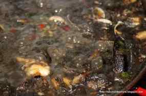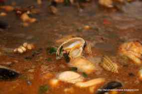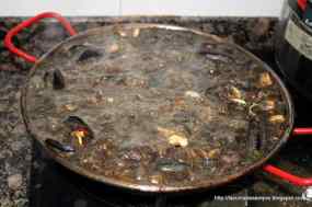 - Afegim els trossos de la cua del llamàntol, les cloïsses i les escopinyes, que ja tindrem obertes al vapor (Jo les obro apart, perquè a vegades poden portar una mica de terra que pot espatllar l’arròs).