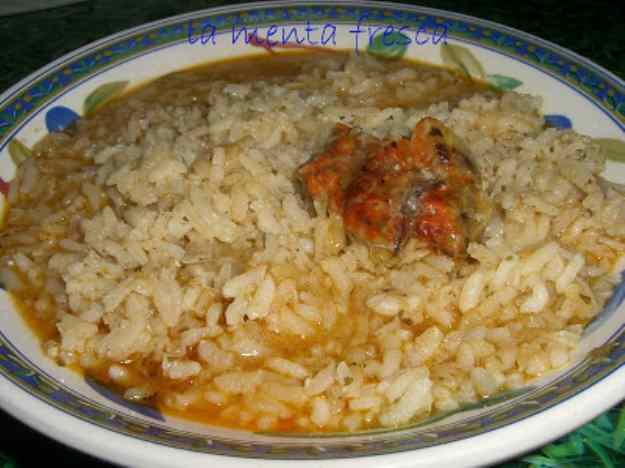 Quan la sopa està gairebé feta però encara no l’hem colat ni li hem posat la picada, apartem uns cullerots de la sopa dins un pot petit i allí hi bullim uns musclos ( congelats queden ben be ) , alguna gamba o escamarlà i un grapat d’arros per persona i quan està fet, ho repartim en els plats i ho acabem d’emplenar amb brou, sense posar la picada.