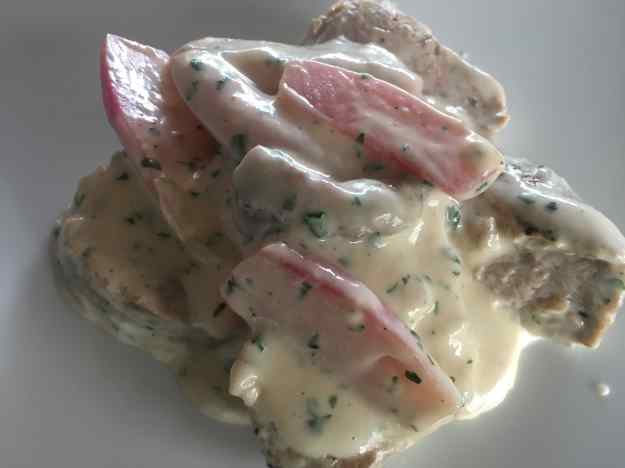 - – Puliu la llaminera de porc de la pell exterior, deixeu la peça ben neta i talleu-la a dauets petits. Afegiu-hi orenga (abundant) i salpebreu-la.
