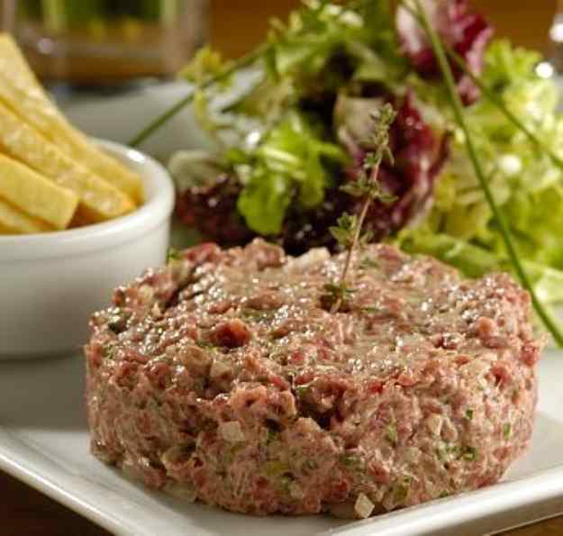 • 500gr de carn de vedella picada. Generalment s’elabora amb filet, però una opció més econòmica és comprar carn de crostó, que no té gens de greix i nervis, li podeu demanar al vostre carnisser de referència que us ho passi per la picadora, però només un cop.