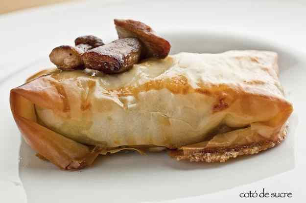 El foie el feu volta i volta, amb la paella ben calenta i sense oli. El poseu a sobre del parmentier en un plat soper i el brou pels costats.