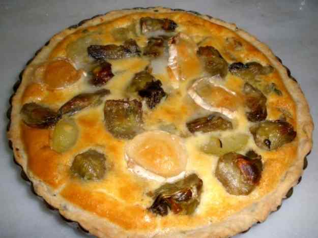 - Es cobreix amb la pasta brisa i s’enforna amb el forn calent. Es cou a uns 180º fins que la pasta esta dauradeta. Un cop cuita, se li dona la volta desseguida en un tombatruites i se serveix tebiona.