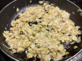 - Pelem i piquem els alls i les cebes i les posem a la paella calenta amb oli.