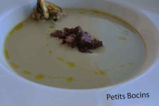 1. Feu un sofregit amb la ceba i l’all. Afegiu-hi els cors de les carxofes, l’aigua i un pessic de sal.