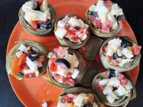 - salsa vinagreta (4 gotets d’oli • 1 de vinagre de vi • 1 cullerada de mostassa • sal • pebre negre)