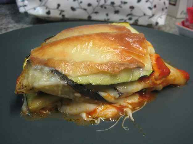 Amb el forn a 180 graus farem una sèrie de talls a lo llarg però sense arribar a la base de l´alberginia, de manera que s´hi puguin posar talls de tomàquet i de mozzarella alternativament. A la recepta et diu que ho posis tot en cru i apa, 35 minuts…amb aquests tempo l´albergínia no et queda cuita del tot i el formatge i el tomàquet, bé, es tornen una mica petits…Crec que és millor posar l´albergínia, ja tallada i amb les herbes, l´all i l´oli per sobre, i deixar com a mínim uns 20/25 minuts que es vagi fent. A mitja cocció, o fins i tot quan li quedi tot just deu minuts la retirem del forn, deixe, que es refredi i llavors hi anem posant les rodelles de tomàquet i alfàbrega. Jo, aquesta opció que estic explicant ara no la vaig probar, però seguint les instruccions del llibre, i de fet augmentant el temps de forn, em va quedar crueta…massa crueta. De totes maneres, una manera curiosa, original i divertida, visualment molt efectiva, de menjar albergínia amb tomàquet i mozzarella.