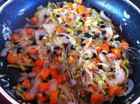 Sofregim les verdues a la mateixa cassola on hem saltejat la carn, a consciència.