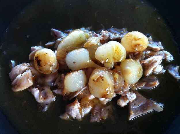 Vaig servir-ho tal qual…i de gust estava molt bo, part de la carn estava al punt, o sigui, es desfeia, però la gran majoria no estava prou melosa…clar que amb l´ajuda de les cebetes i de les verdures (i de la mateixa carn desfeta) entrava molt bé igualment.