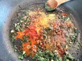 - Piquem les herbes, l´all i ho saltegem en una paella amb suc de llimona.