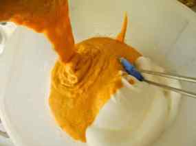 5. Barregeu les clares muntades a la pasta, amb moviments de baix cap a dalt, sense remenar perquè no s’abaixin.