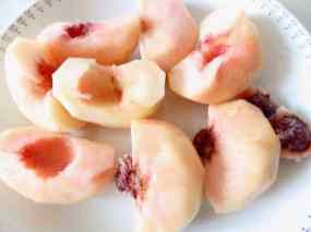 3. Peleu els préssecs, partiu-los per la meitat i retireu els ossos amb un ganivet o un buidador.