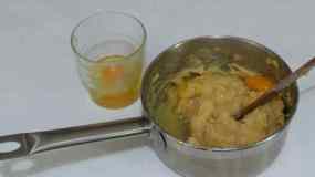 - Afegim els vermells de l’ou, l’oli, el llard, l’anís i el suc de taronja.
