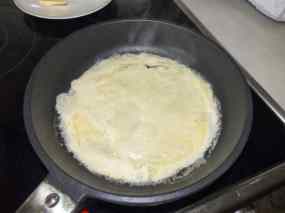 6. Abans de coure cada crep, heu de posar un trosset de mantega a la paella.
