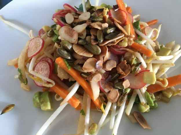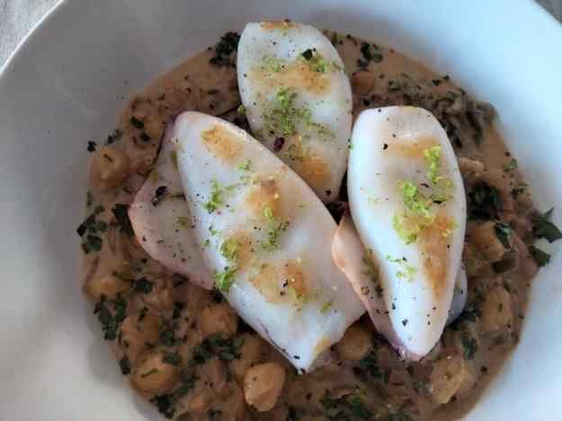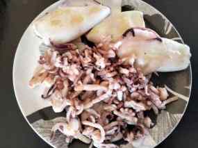 La clau és una bona matèria prima, i un bon maridatge, curt, de quinze minuts com a màxim. I que piqui, poc o molt, però el picant s´ha de notar. Obviament, si no us agrada gens o no el tolereu doncs en prescindiu, però un bon cebiche guanya si és picant. Aquí el tema és triturar l´all, el gingebre, les fulles de coriandre i l´ají amb el suc de llima. D´ají fresc no en trobareu pas, és molt difícil, jo n´he trobat de congelat en un supermercat de productes llatins…on també hi ha, i més pràctic crec jo, ají groc (el picant peruà per excel.lència) en pasta i rocoto, un altre varietat de pebrot picant, però més fort. Jo vaig posar dues cullerades de pasta d´ají i us asseguro que ja picava prou, per tant crec que no cal el rocoto…o bé una petita quantitat de cada cosa. També podeu posar-ne en pols. En fi, talleu la carn de corball (sense pell ni espines) a daus, els llagostins escaldats un minut màxim (poden ser congelats, com vulgueu, si son de confiança també van bé) i tallats en tres trossos, el pop tallat a rodanxes i els musclus ja fets al vapor i sense les closques. A tot això li tireu la marinada i ho deixeu reposar a la nevera entre deu i quinze minuts, ho rectifiqueu de sal i pebre i ho serviu amb enciam, ruca, blat de moro…el que vulgueu, però us recomano que hi poseu moniato, de la manera que sigui (jo vaig fer-ne una mena de puré concentrat i a mode de presentació vaig fer unes quenelles), ja que contrarresta molt bé al picant, es complementen molt bé.