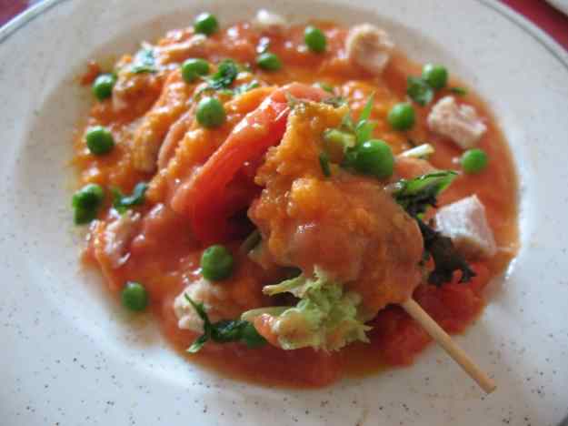 - “(*) sofregir amb oli abundant els alls, quan estiguin daurats afegir tomàquet i quan el tomàquet estigui ben fet, bolcar una cullerada gran de mongetes, xafar-les una mica i remenar. Incorporar a la cassola bullint”