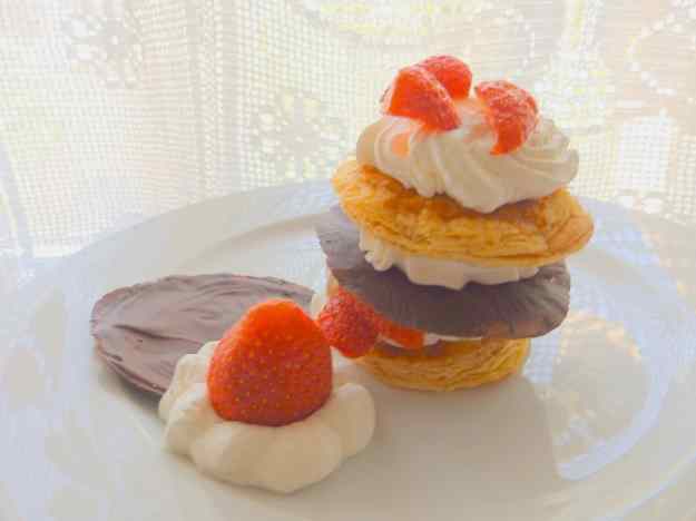 - Quan les bases siguin fredes, ompliu-les amb la crema i poseu-hi uns talls de maduixes per damunt.
