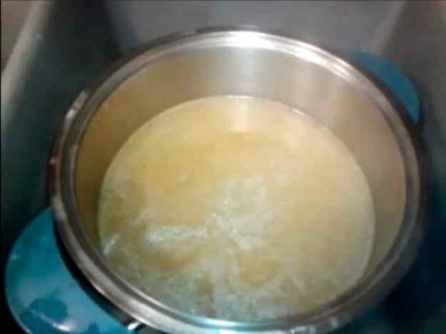 7. Veureu que al cap d’aquest temps tot el greix haurà pujat a la superfície i serà totalment sòlid.