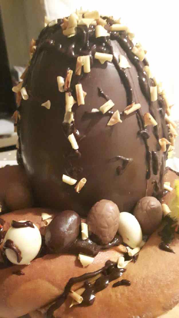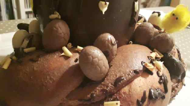 - Decorem amb els ous de xocolata i virolles de xocolata o qualsevol altre motiu decoratiu que hi vulguem posar.