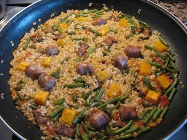 - Posem a escalfar el forn i aprofitem el temps que triga en arribar als 180/200 graus desitjats per rentar i tallar la carbassa i posar-la en una safata per anar al forn, amb paper sulfuritzat, juntament amb la ceba, tallada a juliana gruixuda, irregular. Ho amanim amb sal, pebre de jamaica i oli d´oliva, enfornant-ho durant trenta minuts, potser menys si feu els talls de carbassa petits.