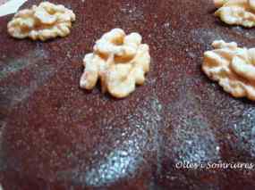 3. Afegir la xocolata amb la mantega (que no aquest molt calent), barrejar. Tirar la farina i barrejar-la bé. Incorporar les nous a trocitos.