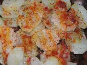- Piqueu els pebrots i talleu les cebes en juliana.