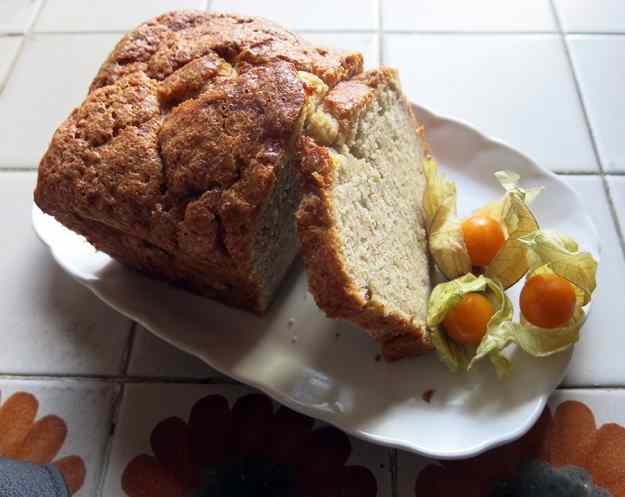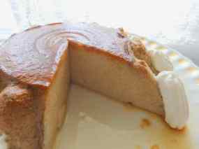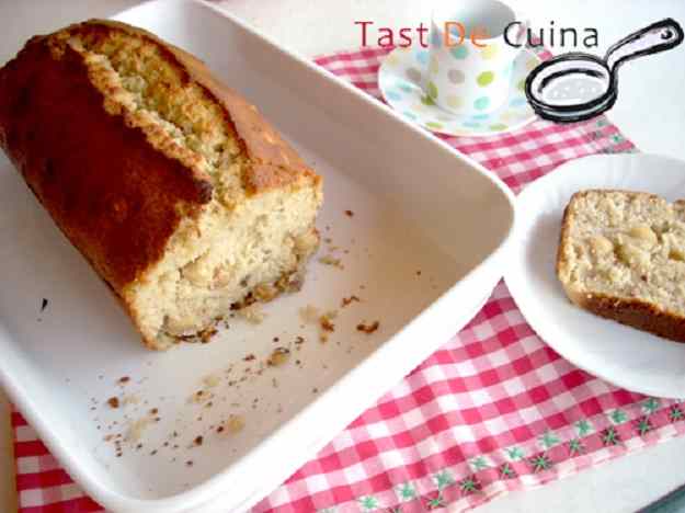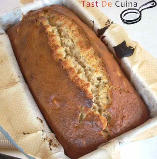 - S’aboca en un motllo de silicona untat de mantega i es posa al forn pre escalfat ea 180º aproximadament una mitjà hora. Es comprova el seu punt de cocció amb un escuradents o broxeta de fusta. La Neus diu que es pot guarnir amb rodanxes de plàtan fregit i ensucrat, però jo he posat simplement sucre llustre.