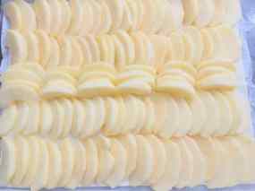 - Renteu les pomes, peleu i talleu-les a llesques primes.