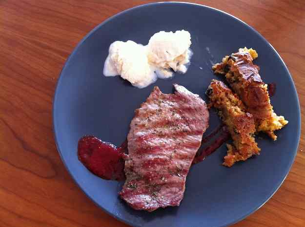 Si ho feu a la brasa, doncs feu la peça sencera. El temps concret no el controlo, ha de quedar al punt, rosadeta. Si ho feu al forn marqueu-la primer a la paella per tots els costats i la acabeu al forn, uns 25 minuts, a 180 graus. El meló el fareu a talls a la mateixa brasa o paella. La salsa posareu primer el sucre al foc amb unes gotes d´aigua. Quan es comenci a desfer hi tireu la barreja de pebres (en gra) i el vinagre, per acabar mullant-ho amb el brou i deixant que es redueixi fins a adquirir consistència de salsa. Ah, i el porc, en la mesura del possible, molt millor ibèric.