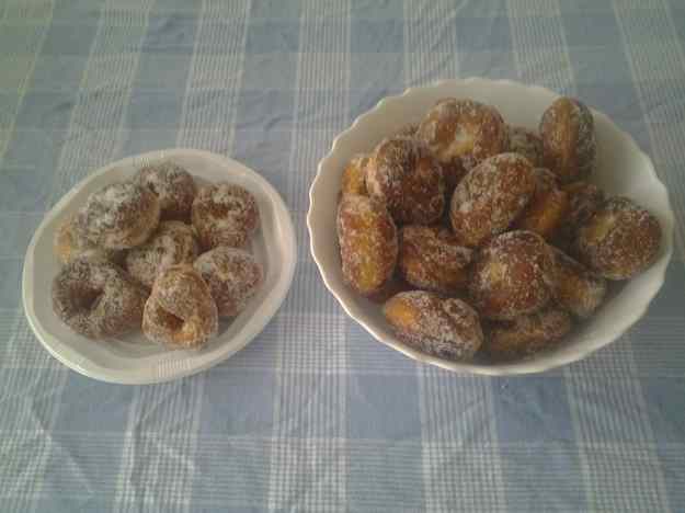 - A la mateixa paella, i també passades per farina de blat de moro, fregim les carxofes.