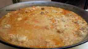 1. A la paella fiquem l’oli d’oliva, quan estiga calent, sofregim el peix.