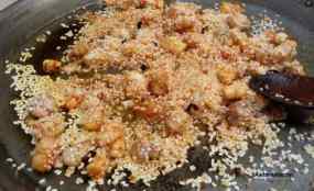 2. Fiquem una culleradeta de pebre roig dolç i els grans d’all trossejades, sofregim uns 10 segons.