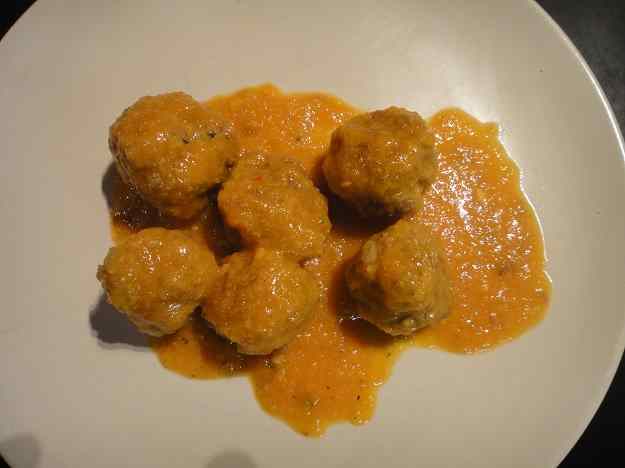 En principi es presenta la sopa per una banda i la carn per una altra, però lo sue es menar-s´ho junt, i ho podeu presentar també amb al carn dins de la sopa, espessota (si ha quedat massa espressa sempre hi podeu afegir una mica d´aigua o de brou de carn) i molt gustosa.