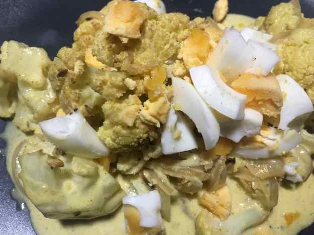 5. Aquesta salsa és, de fet, la clau del plat: barrejada amb els ous i la coliflor cuita amb el curri aconseguim un sabor i una textura molt interessants, sobretot si fem una cocció correcta de la verdura deixant-la un xic al dente.