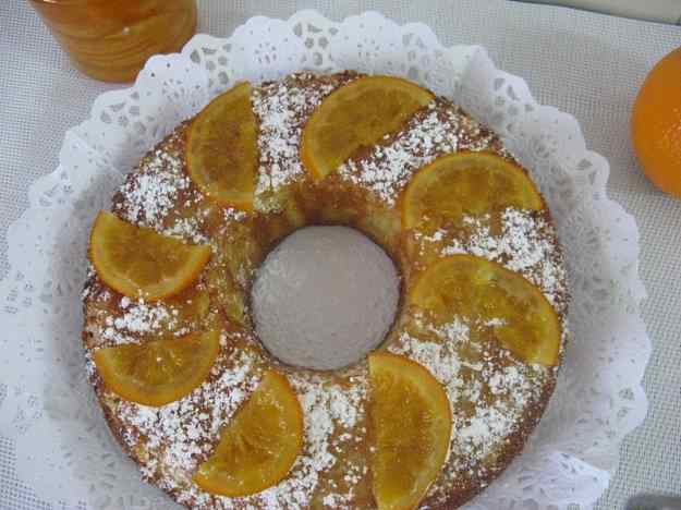 3. Un cop cuit, es desemmotlla i es deixa refredar. Es pot guarnir amb bocins de taronja confitada, amb glacejat de taronja o simplement empolsant-lo amb sucre llustre