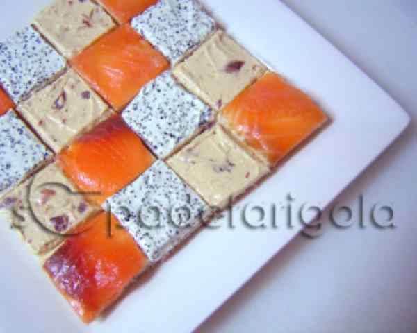 Després d’untar l’últim pis, tallar a la mida que ens agradi. I per sobre adornar amb caviar o succedani de caviar.